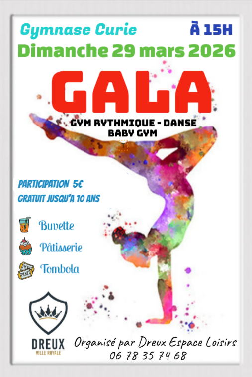 Le Gala 2026 de GR Baby Gym et de danse aura lieu au gymnase Curie le dimanche 2 mars 2026 à 15 h.
